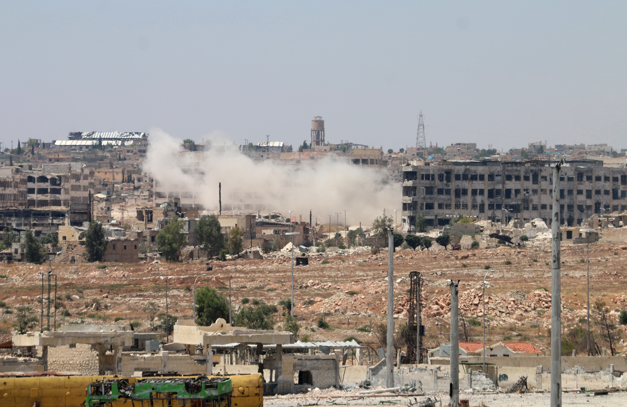 Сирийский правозащитный центр, базирующийся в Великобритании, сообщил, что в воскресенье районы, удерживаемые оппозицией, подверглись бомбардировке правительственными войсками. Жители этих районов жгут шины, чтобы ухудшить видимость над востоком города.