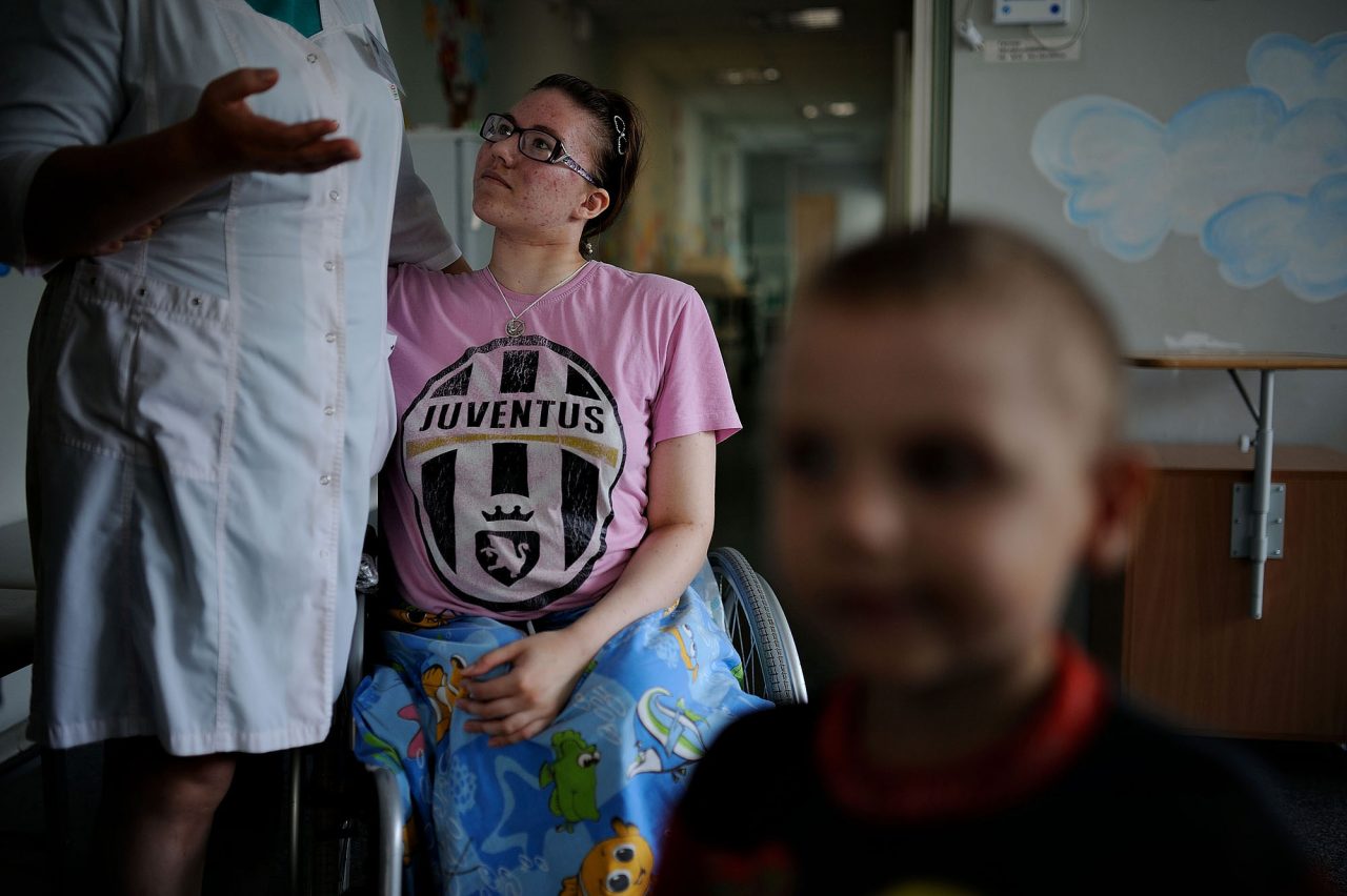 Как-то так исторически сложилось, что самые тяжелые дети лежат в отделении на первом этаже, а на втором оказались те, кто с удовольствием в хорошую погоду гулял бы на улице. Но ни пандуса, ни лифта в больнице нет. Спасают волонтеры, которые буквально на руках выносят детей из больницы, особенно летом, когда в сквере перед больницей устраивают пикники. Или заносят внутрь тех, кто приезжает специально на мероприятия и праздники.