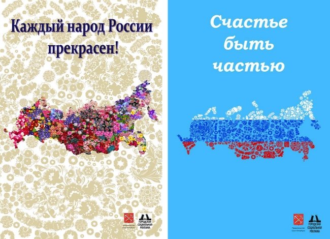 Комитет по печати Петербурга и ООО «ПетРемСтрой» подписали контракт на изготовление макетов социальной рекламы в феврале 2016 года. Каждый месяц ПРС отправляет посреднику – Комитету по межнациональным отношениям – три поучительных плаката на выбор, а тот пересылает в Комитет по печати один утвержденный вариант. Спустя короткое время этот баннер появляется на улицах Петербурга, пытаясь искоренить межнациональную рознь. За три макета в месяц до декабря 2016-го власти заплатят компании 235 тысяч рублей. Таким образом Комитет по печати исполняет правительственную программу «Создание условий для обеспечения общественного согласия в Санкт-Петербурге».