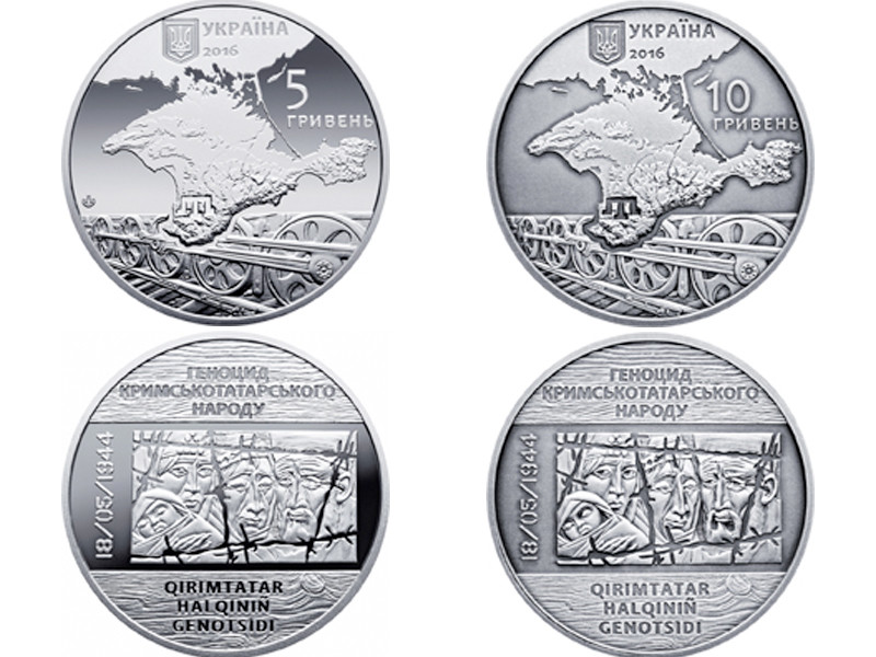 Национальный банк Украины объявил о выпуске в обращение новых памятных монет номиналом в пять и 10 гривен в середине мая, приурочив это к 72-й годовщине сталинской депортации татар из Крыма.