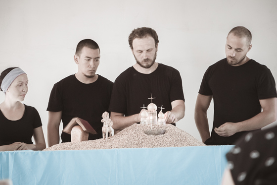 © Юлия Калинина Вместе с новой жизнью в город пришел фестиваль-лаборатория «Свияжск-артель» — детище фонда «Живой город» и неутомимого куратора Олега Лоевского. Формат прост: на остров Свияжск десантируют драматургов, те в короткий срок пишут все, что придет в голову, на тему «Остров Свияжск» — концепция абсолютно в духе «Париж, я люблю тебя» или «Аниматрицы». Во вторую очередь призываются режиссеры с актерами, которым за пять дней нужно произвести чудодейственные процедуры, чтобы из драматургических опусов вышло что-нибудь годное. Сам фестиваль длится один день, за который три изрядно загорелые и изъеденные комарами команды успевают по два-три раза показать плоды своих трудов всем желающим.