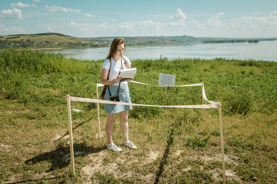 Волкострелов и без драматурга справился отлично. На суд публики был представлен «Музей мест которые»: примерно 15 точек на карте острова, отмеченные табличками и время от времени посещаемые исполнителями. Молодые люди в белых футболках и с портативными микрофонами безучастно и поодиночке на протяжении целого дня перемещаются от пункта к пункту, сообщая зрителям — как правило, случайным, — чем важно то или иное место. Например, на холме с видом на пирс — «Место в котором были киты», лирический намек на ревущие драги. «Место в котором дом с собакой» — про то, каким был Свияжск 1990-х, «Место в котором память вытесняет человека» — про поросший плющом трактор «Беларусь».