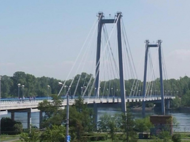 Реклама размещена почти на каждом метре дорожного покрытия моста. Объявления напечатаны на асфальте белой краской, а также указан номер телефона оператора службы заказа такси «Микс».