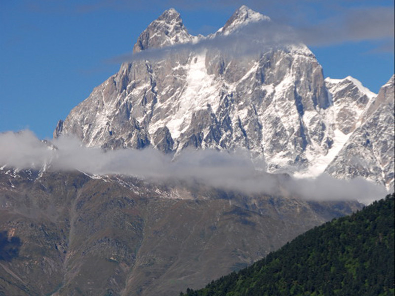 Ушба - одна из вершин Большого Кавказа, расположенная в 1,5 км южнее границы с Россией. Это самый красивый и в то же время суровый горный массив Кавказа, который состоит из двух вершин - Северной (4690м) и Южной (4710м). Благодаря своему крутому профилю и нестабильной погоде, Ушба, по мнению многих альпинистов, представляет собой наиболее трудную для подъема вершину на Кавказе.