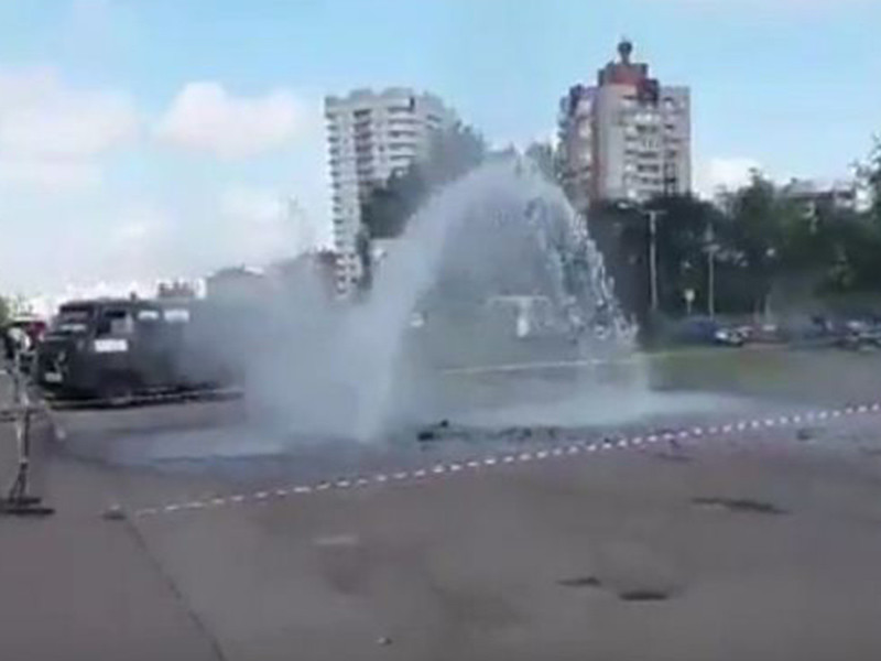 В Сети была опубликована видеозапись, на которой видно, как струя воды бьет из асфальта, поднимаясь на несколько метров.