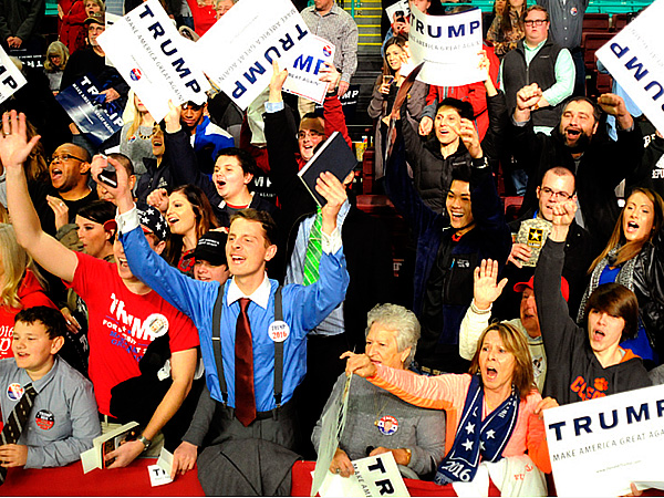 Сторонники Д.Трампа / donaldjtrump.com The Economist пишет об атаке республиканцев на Трампа. Речь Трампа об экономике в понедельник была продуктом некоторой работы по итогам спада популярности. Для его обычного уровня, комментирует автор, это выступление было верхом профессионализма, притом что фактически он просто высказал несколько расхожих республиканских штампов в применении к налогообложению. Тем не менее, он подготовил эту речь и даже во время выступления вел себя сдержанно. Например, вопреки обыкновению, он не стал угрожать применением силы, когда недовольные слушатели начали его перебивать.