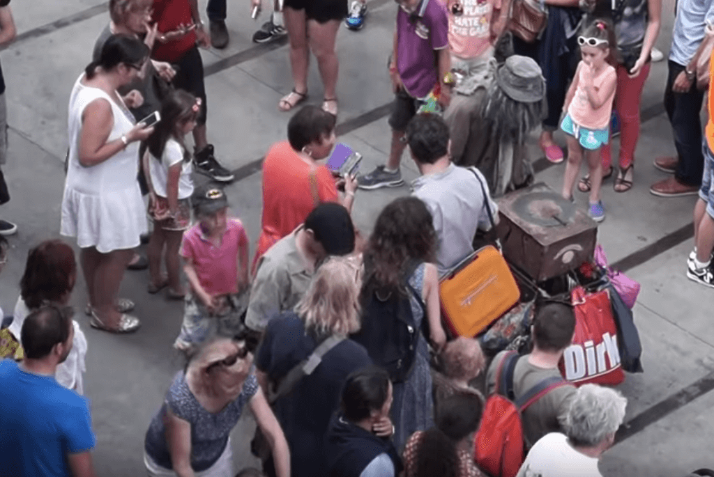 Дирк ходит по толпе и просит у прохожих мелочь, получив деньги, он исполняет на шарманке короткую мелодию. Движения этого робота довольно точно копируют человеческую пластику.