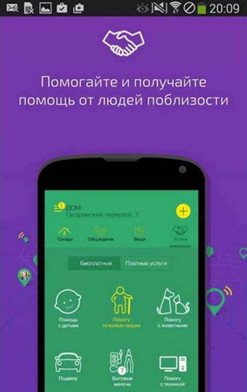 Можно помогать друг другу по-соседски, предлагая свои услуги или вещи. Через KnockChat в разделе «Услуги» вы можете найти соседа, который научит вас играть на гитаре, или вы сами можете предложить участникам свою помощь, например, забрать на дачу шкаф или отдать одежду в разделе «Вещи» .