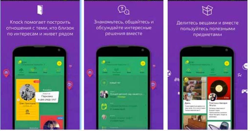 Мобильное приложение «KnockChat», позволяет соседям обсудить проблемы дома, предложить свои вещи, услуги, и объединяться для проведения мероприятий во дворе. Автор идеи Владислав Крейнин и менеджер проекта Павел Козлов запустили приложение с целью создания добрососедских сообществ во всей стране.