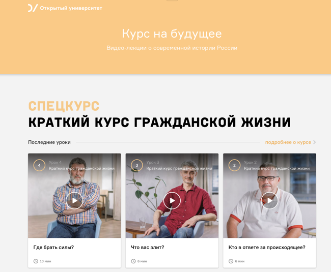 Удачнее сложилась история просветительского проекта «Открытый университет», выпускающего видеокурсы о современной истории России и гражданском сознании. Его дизайном тоже занимался Пойдо, а общим курированием — гражданская жена Чичваркина, гендиректор его компании Hedonism Wines Татьяна Фокина. Сам Ходорковский в проект не вмешивался, полностью отдав его на откуп организаторам. Фокина подобрала качественный преподавательский состав (Сергей Гуриев, Кирилл Рогов, Юрий Сапрыкин и другие); редактором стал филолог и журналист Глеб Морев. Как утверждает последний, впрямую политическим проектом «Открытый университет» не является. «Однако гуманитарная проблематика традиционно становится в России орудием идейной полемики. У нас нет национального консенсуса ни в одной области гуманитарных наук — ни в истории, ни в истории культуры, — объясняет Морев. — Так что, как сказал поэт, говоря о прошлом, мы предсказываем будущее. У нас вполне определенная позиция, которая видна по подбору спикеров и материалов, — и мы этой позиции не стесняемся, считая, что уровень наших лекторов и основательность наших материалов говорят сами за себя».