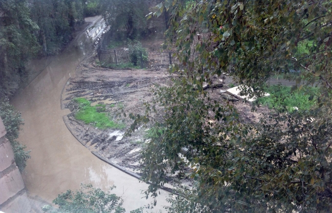 «Из-за того, что проезд затоплен, а двор весь перекопан, пересечь его вообще теперь невозможно! – говорит Олег Агинский. – Приходится давать большой крюк по улице. Надо прочистить наконец люк и, возможно, изменить наклон асфальтового покрытия, чтобы вода не скапливалась, но убедить городские власти это сделать никак не удается».