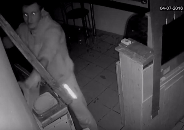 На кадрах видно, как грабитель забирается в помещение через окно.