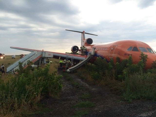 «Як-42 при приземлении выкатился за пределы ВПП на 400 метров, самолет получил повреждения шасси и левого крыла», —заявили в управлении.