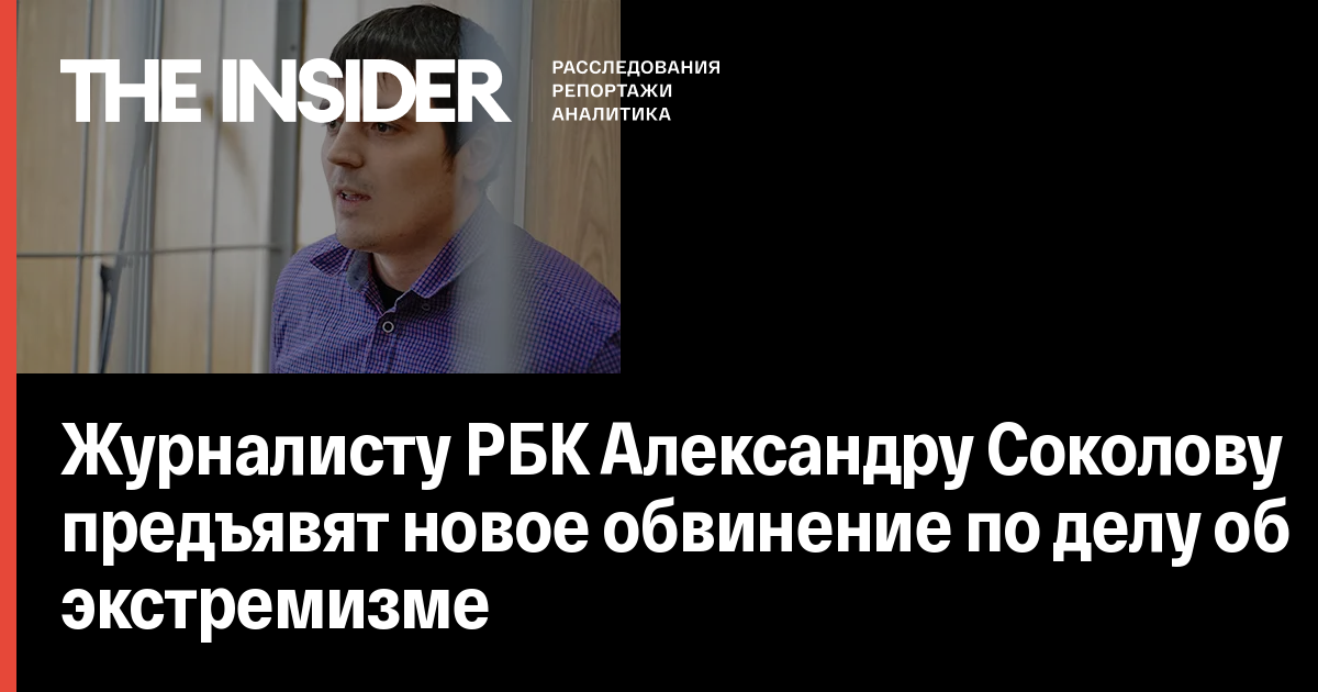 Журналисту РБК Александру Соколову предъявят новое обвинение по делу об экстремизме