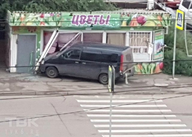 В результате удара Honda Stepwgn сбил переходившую дорогу девушку, после чего врезался в цветочный павильон на обочине.