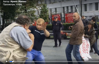 В начале инцидента полиция не спешила вмешиваться. Участники акции, в том числе Михаил Кригер, сами дали отпор нападавшим.