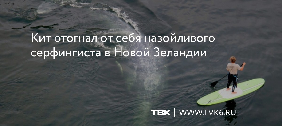 Кит отогнал от себя назойливого серфингиста в Новой Зеландии