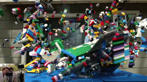 Может показаться, что лего-авиакатастрофа — это скучно, но в слоу-мо получается не хуже, чем в блокбастерах.