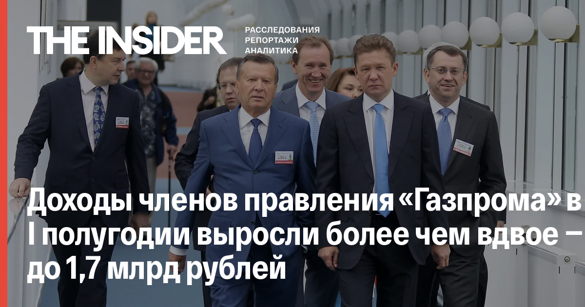 Доходы членов правления «Газпрома» в I полугодии выросли более чем вдвое — до 1,7 млрд рублей