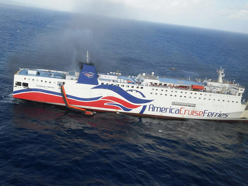 Паром 17 августа возвращался в столицу Пуэрто-Рико, город Сан-Хуан, из плавания в Санта-Доминго - столицу Доминиканской Республики, когда на борту вспыхнул пожар.
