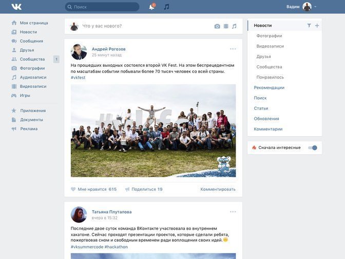 «ВКонтакте» перевела всех пользователей на новый дизайн