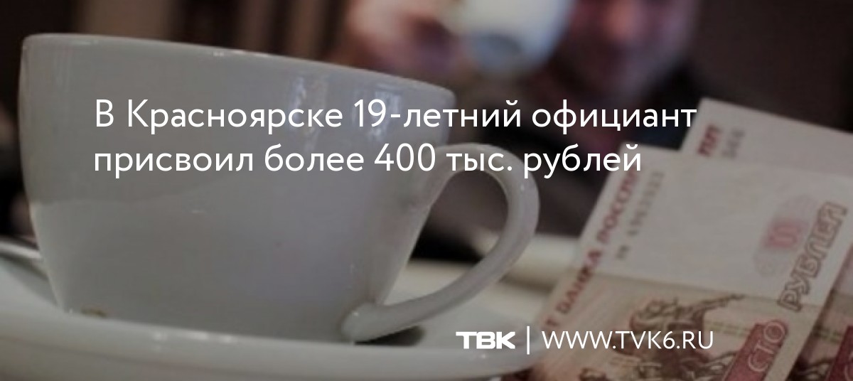 В Красноярске 19-летний официант присвоил более 400 тыс. рублей