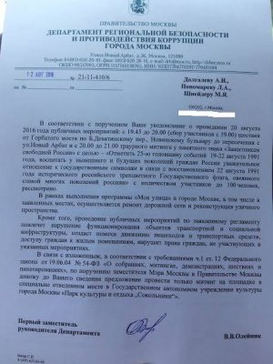 Власти предложили перенести траурную акцию 20 августа с места гибели защитников Белого дома в гайд-парк в Сокольниках, а митинг — на Суворовскую площадь. Церемонию подъема государственного флага России 22 августа предложено не проводить вовсе.