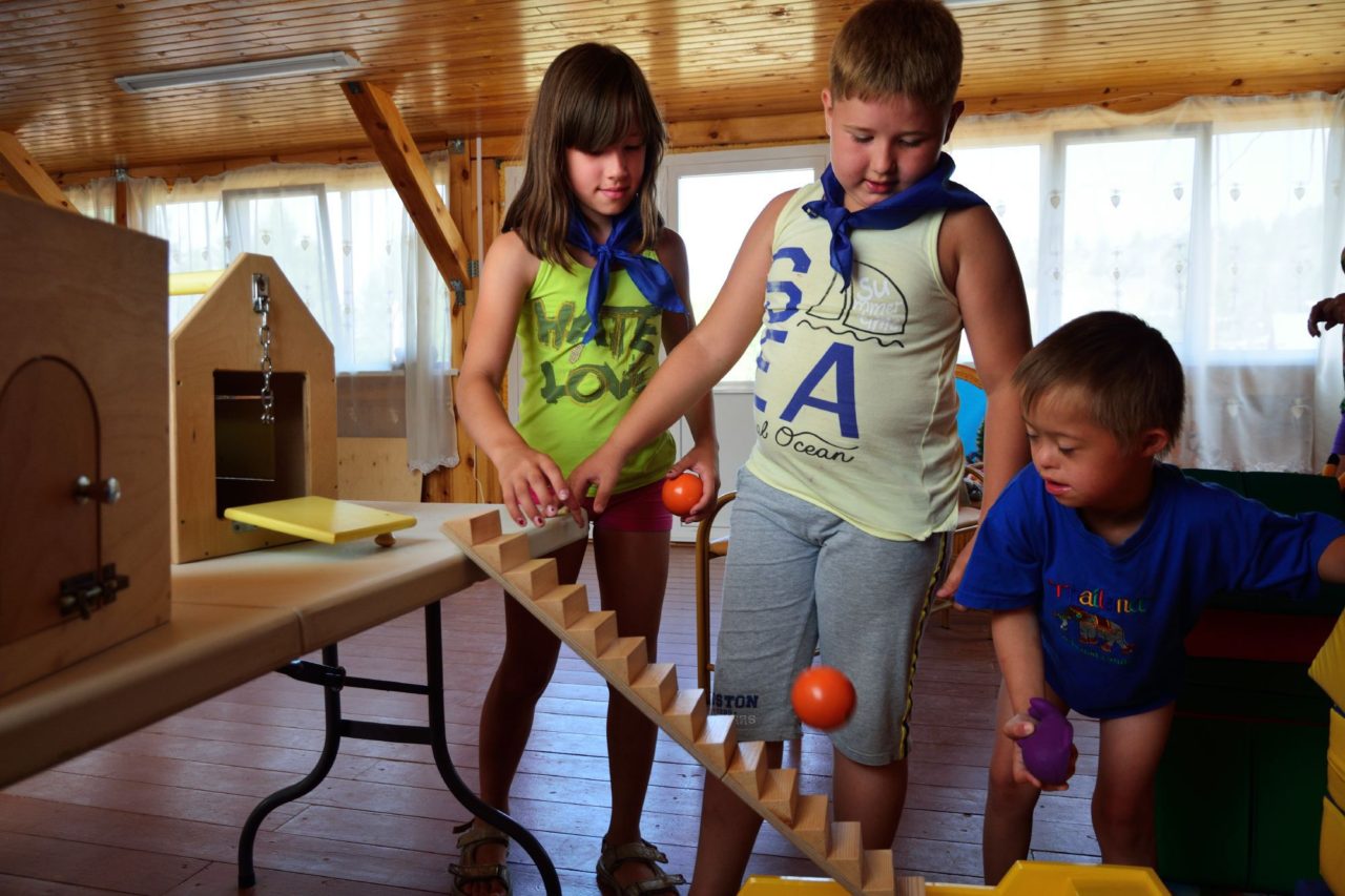 Особенные и обычные дети в лагере играют и занимаются вместеФото: Александр Зыков для ТД При своевременной квалифицированной системной помощи специалистов в раннем возрасте ребенок с синдромом Дауна может развиваться, лишь немного отставая от сверстников, уверяют родители. У малышей, которых специалисты подхватывают сразу, идет активное развитие речи. Для «особенного» ребенка главная проблема, как считают в Центре — не состояние его здоровья, а стереотипы общества о его неспособности учиться, работать и развиваться наравне со всеми. Этот стереотип не позволяет принять «особенных» детей как полноправных личностей со своими возможностями и талантами.