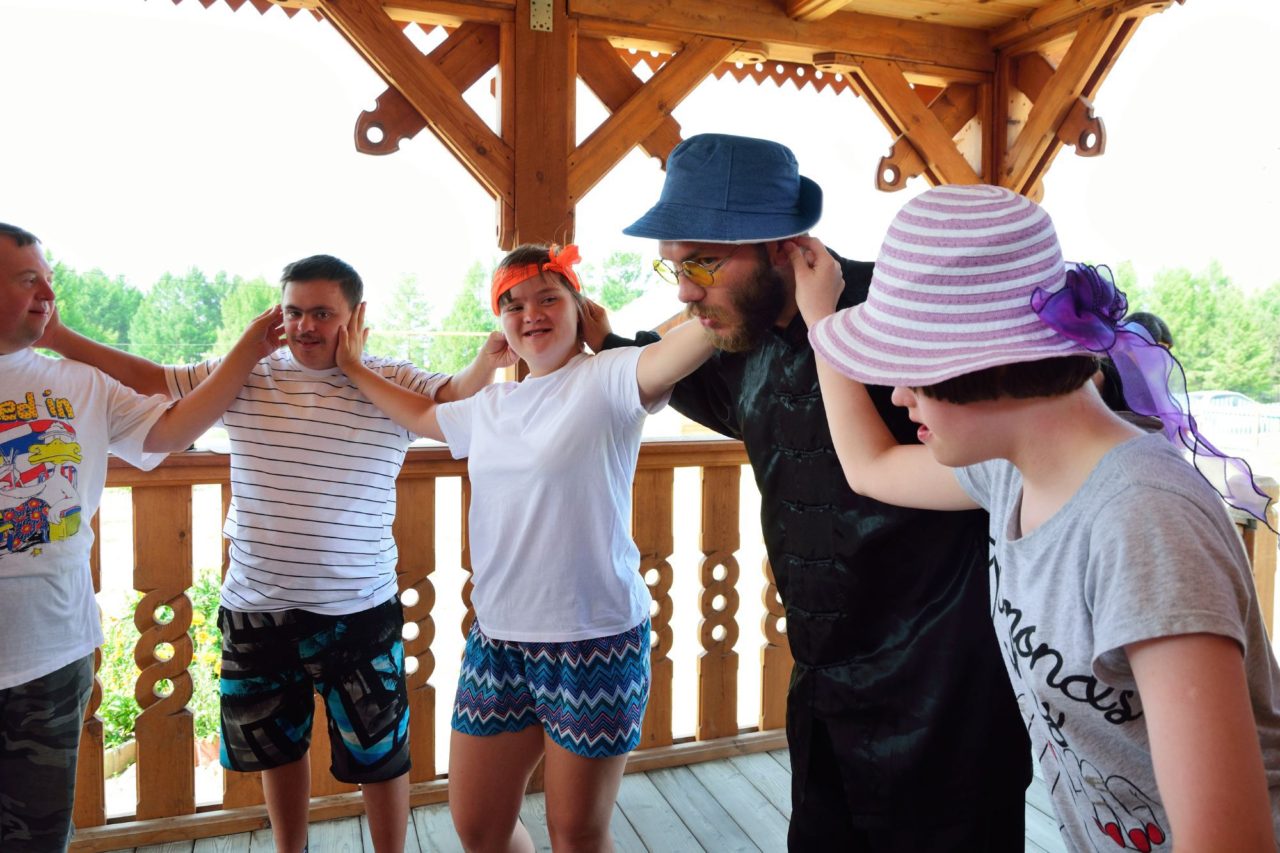 Николай Марченко и студенты интегрированной театральной студии «Театр как терапия» на занятиях по пластической импровизации.Фото: Александр Зыков для ТД После летнего благотворительного пробега «Спорт во благо», который устраивает «Радуга» в центре Иркутска, чтобы поближе познакомить горожан с особенными людьми, на асфальте мелком осталась надпись, сделанная детским неровным почерком: «Дети с синдромом Дауна ― вы классные».