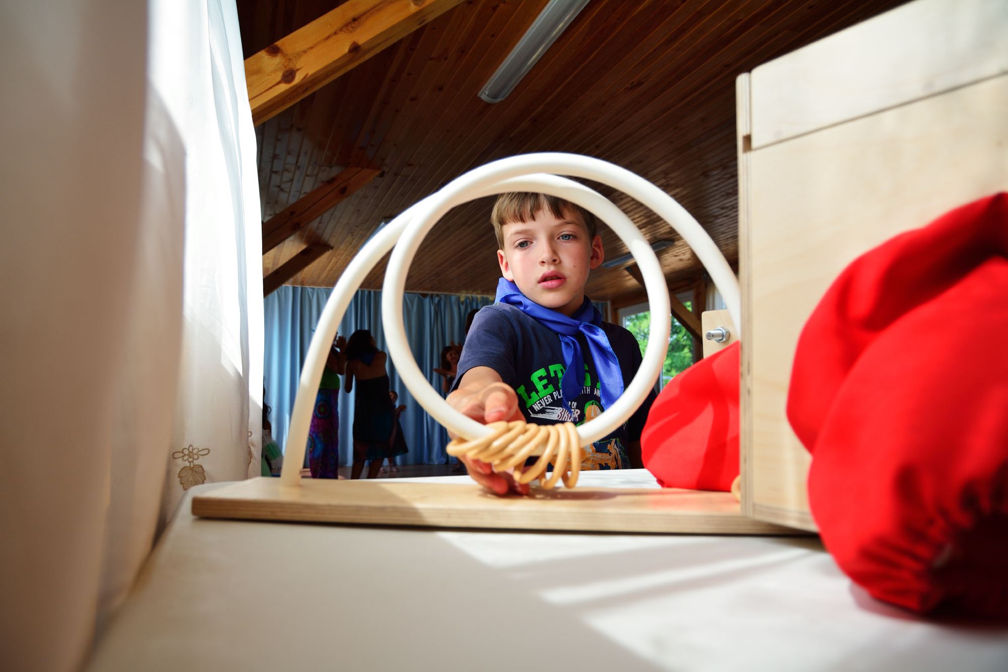 Когда родился Даня, мне его даже не показали сначала. Педиатр только сказала: «ой, какой-то дауненок родился»У корпуса малышей мамы за столом сосредоточенно складывают бумажных журавликов оригами. До вечера каждый отряд должен сделать 160 журавликов. В ход пошли уже все глянцевые журналы из запасов мам. У детей свои затеи. Белокурый Даня выкинул из окна ненужные, на его взгляд, вещи и увлеченно смотрит мультики на планшете. Две трехлетние модницы Полины сидят с книжкой на шезлонге. Пятилетний Мишаня тоже пытается освоить оригами. Кто-то из детей все мокрые вещи после купания спрятал под подушку. И, оторвавшись от журавликов, мамы идут сушить кровать. Ребята постарше готовятся к концерту, который приедет снимать телевидение. В беседке отряд взрослых занимается пластической импровизацией.