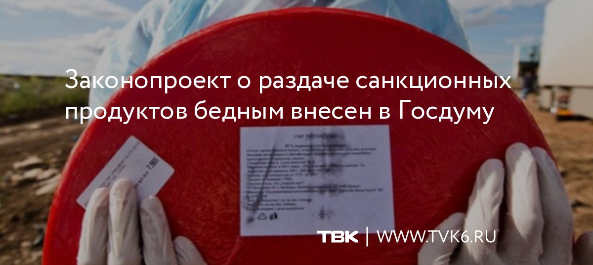 В законопроекте говорится, что качественные санкционные продукты, соответствующие санитарно-эпидемиологическим требованиям, «подлежат безвозмездной передаче на социально значимые нужды».