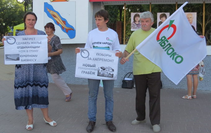 В Ейске сторонники и члены партии «Яблоко» провели пикет с целью привлечь внимание общества и власти к проблемам города. Также присутствующие на акции яблочники не обошли вниманием и высказались против свода антитеррористических законов, известных как «пакет Яровой».