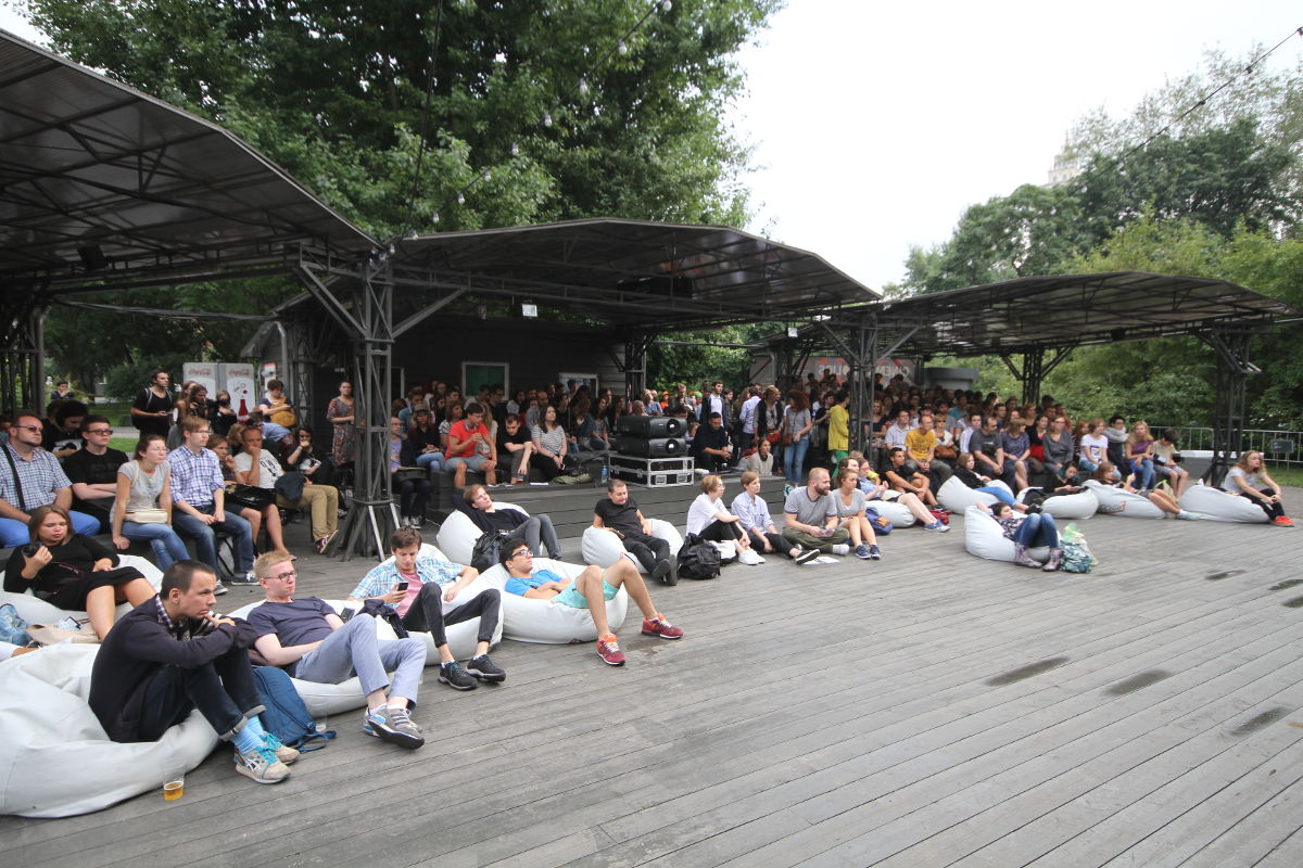 В этом году у нас появилась более сильная театрально-перформативная часть, которой не было в прошлый раз, тогда у нас была одна театральная постановка, но очень скромная по сравнению с хореографическим перфомансом и спектаклем-экскурсией от «Театра.Doc». Также в этом году мы сделали книжные ряды, что мы давно хотели устроить. Конечно, у нас в голове есть образ замечательной ярмарки Non-fiction, но она одна-единственная, такого рода литературных событий Москве не хватает. Кроме того, в этот раз на фестивале больше музыки, больше лекторов, больше разговоров про этот период. Единственная проблема организации — то, что площадь парка очень большая, и ее тяжело связать в одну историю. Много людей, которые проходили мимо и до конца не понимают, что здесь происходит, но мне это даже нравится, потому что появляется элемент ситуационализма, когда люди стоят в очереди на Айвазовского, а тут вдруг «Лебединое озеро» или выступление Сергея Гандлевского. Для них это все как из другого мира. Так происходит какое-то соприкосновение, которое в дальнейшем вызовет реакцию.
