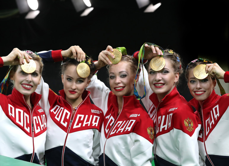 Российские гимнастки с золотыми медалями. Рио-де-Жанейро, 21 августа 2016. Фото: А. Голованов и С. Киврин / Служба информации ОКР Для сборной России Олимпиада была особенно напряженной в связи с предшествовавшем ей допинговым скандалом, из-за которого ряд российских спортсменов и, в частности, практически все легкоатлеты, были лишены возможности участвовать в Играх. Тем не менее, Россия показала объективно хороший результат, завоевав награды даже в тех видах спорта, где их не ожидали.