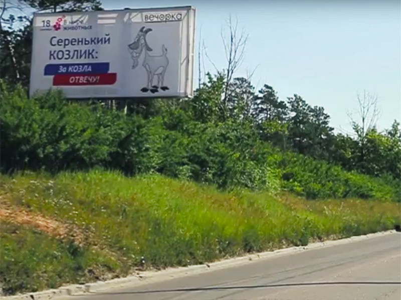 В минувшие выходные газета разместила в столице Забайкалья несколько баннеров с изображениями животных, ветки багульника и слоганами, которые оформлены в том же стиле, что и плакаты кандидатов на пост губернатора региона и депутатов Госдумы. В считаные минуты баннер с героями басни Крылова "Квартет" был демонтирован, еще на одном баннере был изображен "Косолапый Мишка" с гаджетом в руках и слоганом "Денег нет, но вы держитесь!" А серенького козлика со слоганом "За козла отвечу!" журналистам удалось отстоять.