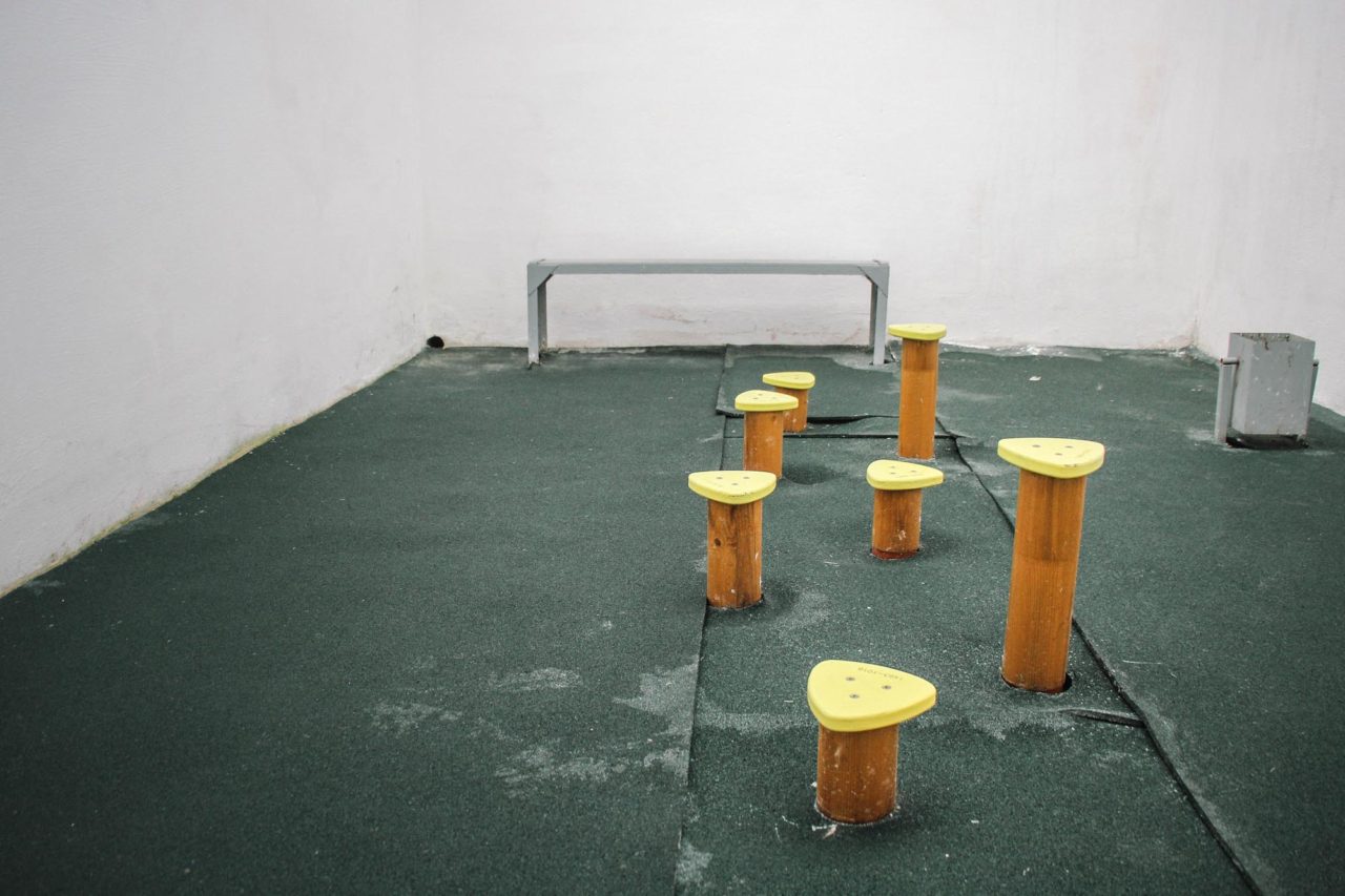 Камера на шесть человек оказалась чистой и довольно просторной, стены — со следами свежайшей побелки, будто готовились к приходу гостей, кровати — обычные, не двухъярусные. Пока фотографы и операторы снимали интерьеры, женщины стояли в коридоре лицом к стене. Потом журналистов повели показывать прогулочные дворики. Один из них как раз предназначался для прогулок с детьми: около 15 квадратных метров, белые стены, черное резиновое покрытие под ногами, лавочка и мусорка, крепко привинченные к полу, и деревянная песочница единственным ярким пятном под небом в клеточку. Даже с песком и совочками-формочками внутри. Все условия, чтобы не хотеть попасть сюда никогда, — ни одной, ни с ребенком.