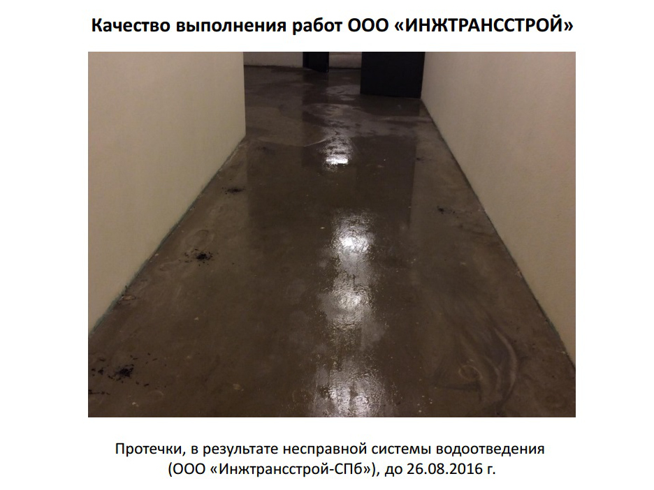 Протечки в помещениях стадиона. Из материалов о реализации проекта, подготовленных пресс-службой администрации Санкт-ПетербургаВ начале августа прошли тендеры на право достроить «Арену», и победителем стало ОАО «Метрострой». Предполагалось, что стоимость работ по окончанию строительства стадиона составляет 5,387 млрд рублей, по благоустройству прилегающей территории – 2,391 млрд рублей. Завершить все работы планировалось не позднее 26 декабря 2016 года. Сам стадион решено было сделать одним из тех, на которых будут проводиться матчи чемпионата мира по футболу 2018 года.