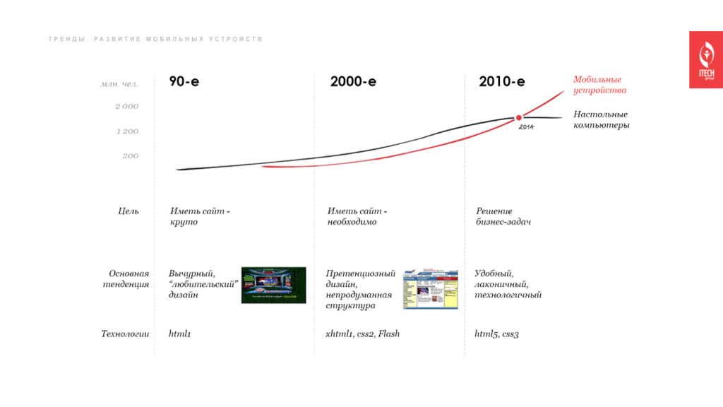 В 2016 году главными трендами веб-дизайна являются легкость восприятия, простота, наглядность и удобство. Если в 90-е годы был вычурный, любительский дизайн, в 2000-е – претенциозный с непродуманной структурой сайта, то уже к 2010 он стал удобным, технологичным и лаконичный.