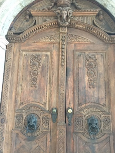 Атакующие машины в Средневековье именно так назывались — драконами и баранами; ну вот чтобы нападение отвратить, чтобы боевыми машинами никакие двери не долбили, и прикрепляли их изображения. От сглазу. В Мюнхене в Национальном музее Баварии выставлена дверь с драконами и баранами (баран сверху, а драконы внизу) из снесенного в 1910 году дворца графа Таттенбаха. Старинный портал — единственное, что реконструкторы города сохранили и отнесли в музей.