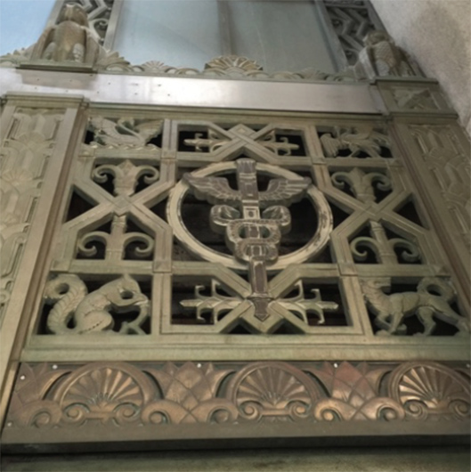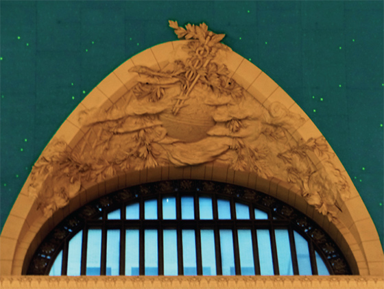 Ну а фашистских кадуцеев в Нью-Йорке сколько угодно. Ведь одна из эмблем Нью-Йорка — Меркурий, а кадуцей — его атрибут. Вот хотя бы в здании таможни Нью-Йорка.