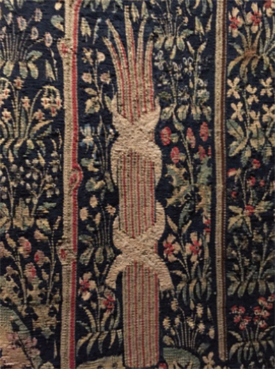 Это именно ликторский пучок. Фашо. Такой, какими они выглядят на фашистских зданиях Италии. В частности, на здании Центрального вокзала в Милане. Но в герб Бруклина он перешел из старинной амстердамской иконографии. Таких пучков немало, кстати, на фресках и витражах Возрождения. Вот, например, на гобелене в музее Клойстерс. Пучок розог — не для бичевания политических несогласных (как иносказательно имелось в виду и в Древнем Риме, и при фашизме), а для бичевания Христа.