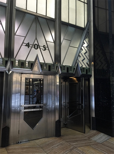 То же самое в удесятеренном масштабе разворачивалось на заре эпохи небоскребов в Нью-Йорке. В холле «Крайслера» стремившийся всех поразить Ван Аллен задействовал пламенеющий агадирский мрамор из Марокко в сочетании с панелями ар-деко из мексиканского оникса; на пол настелил скошенные плиты из желтой сиены; повсюду посетителя встречают зубья и решетки из созданной концерном «Крупп» специально для этого проекта нержавеющей хромоникелевой стали «Нироста»; двери лифтов там сделали наборные, деревянные, исполненные в технике маркетри из японского ясеня, английского серого дуба, восточного ореха, черного дерева, стального дерева, кубинского плам-пудингового дерева, миртового капа и курчавого клена. Если уж это не всемирная выставка ценных материалов для строительства…