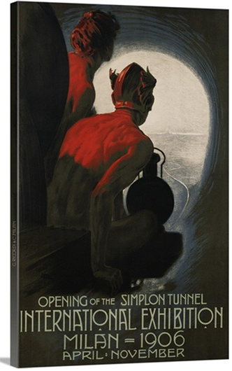 Кто это сидит — дьяволы — на плакате Международной Миланской выставки 1906 г. работы Леопольда Метликовица? Это туннельные рабочие, проложившие беспрецедентную дорогу в Альпах, под Симплоном. Соединившие железными путями Милан с Парижем. А непосвященному может показаться — демоны в шлеме Меркурия. Или гаргульи, которые заглядывают вместе с нами в волшебное и страшное будущее. Лампа — бомба? Черт в городе?