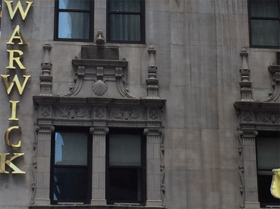 Тем не менее футуристски спрямленные в очертаниях католические раковины св. Иакова, символ паломничества в Сантьяго-де-Компостела, сплошь и рядом видны на фасадах нью-йоркских небоскребов, таких, как «Уорвик».