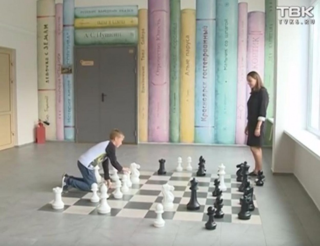 В лицее №6 каждая перемена проходит под девизом «Шах и мат!». Часть коридора возле бибилиотеки – это огромная шахматная доска с фигурами, почти в сто раз больше обычных.