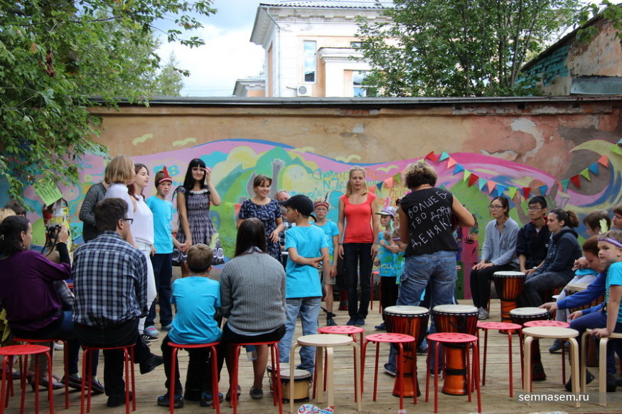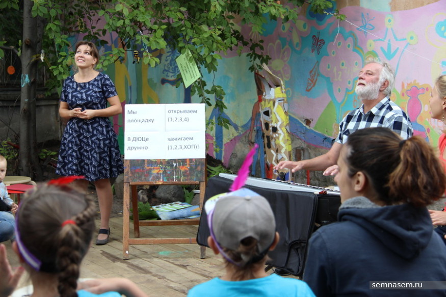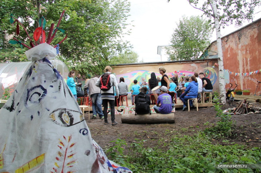 К этому событию они готовились давно, а поскольку день открытия площадки стал завершающим для проходящего в студии в это время тренинга для особых детей, то ребята сами пели и танцевали для гостей и с гостями. Индейские мотивы (лагерь проходил в этой игровой стилистике) захватывали всех, кто заглянул в этот день в сад.