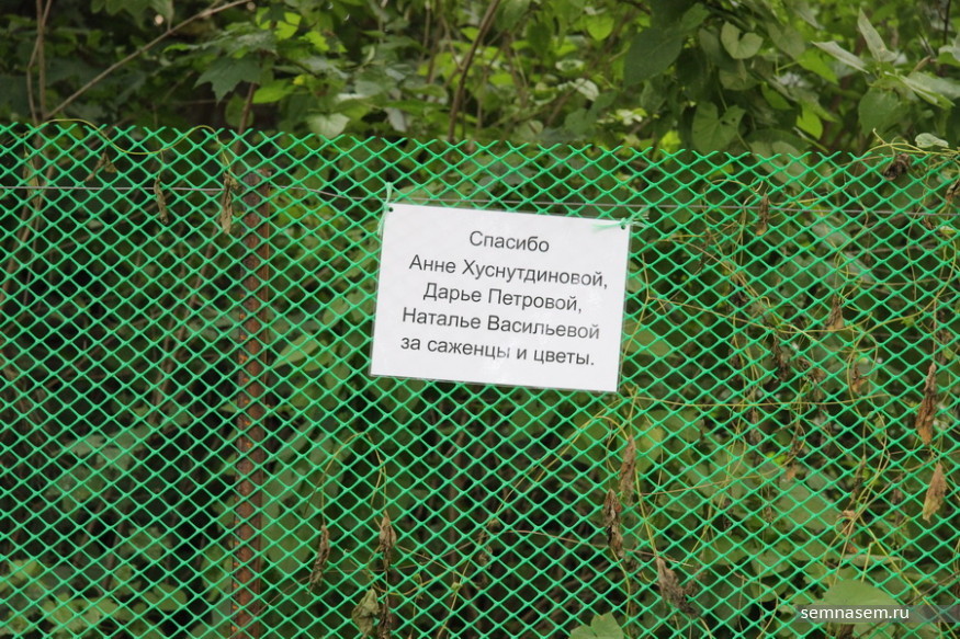 «Трудовые десанты» проходили все лето и собирали десятки энтузиастов. Были у студии и помощники — волонтеры центра добровольчества и их иностранные гости, воспитанники юниорского союза «Дорога» и просто неравнодушные горожане. Многие пришли на открытие площадки. Чтобы имена строителей и спонсоров сада знал каждый, таблички с благодарностями висят здесь же — на заборе, деревьях, стенках теплицы.