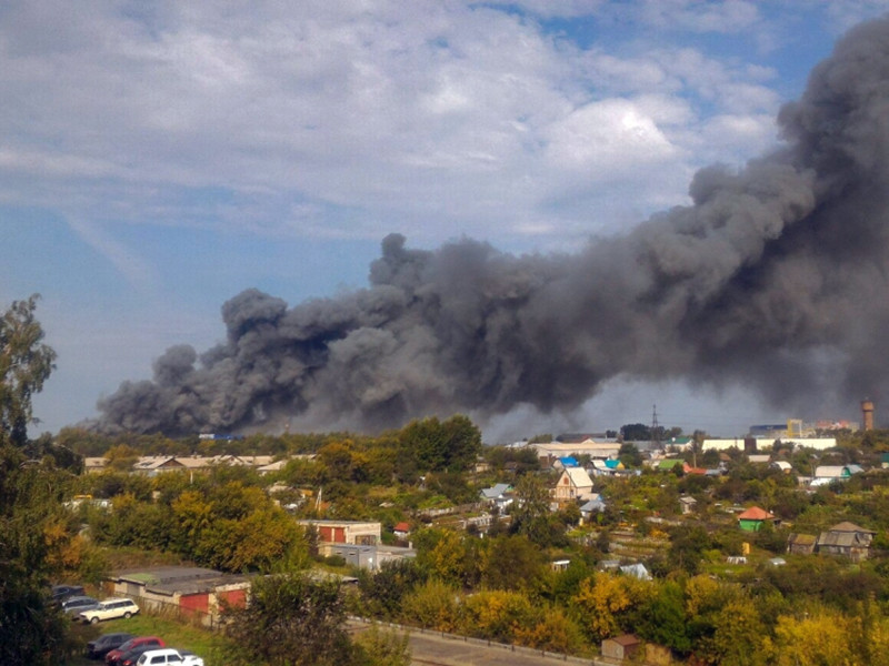 После пожара на складе пластиковых окон Барнаул окутал едкий дым