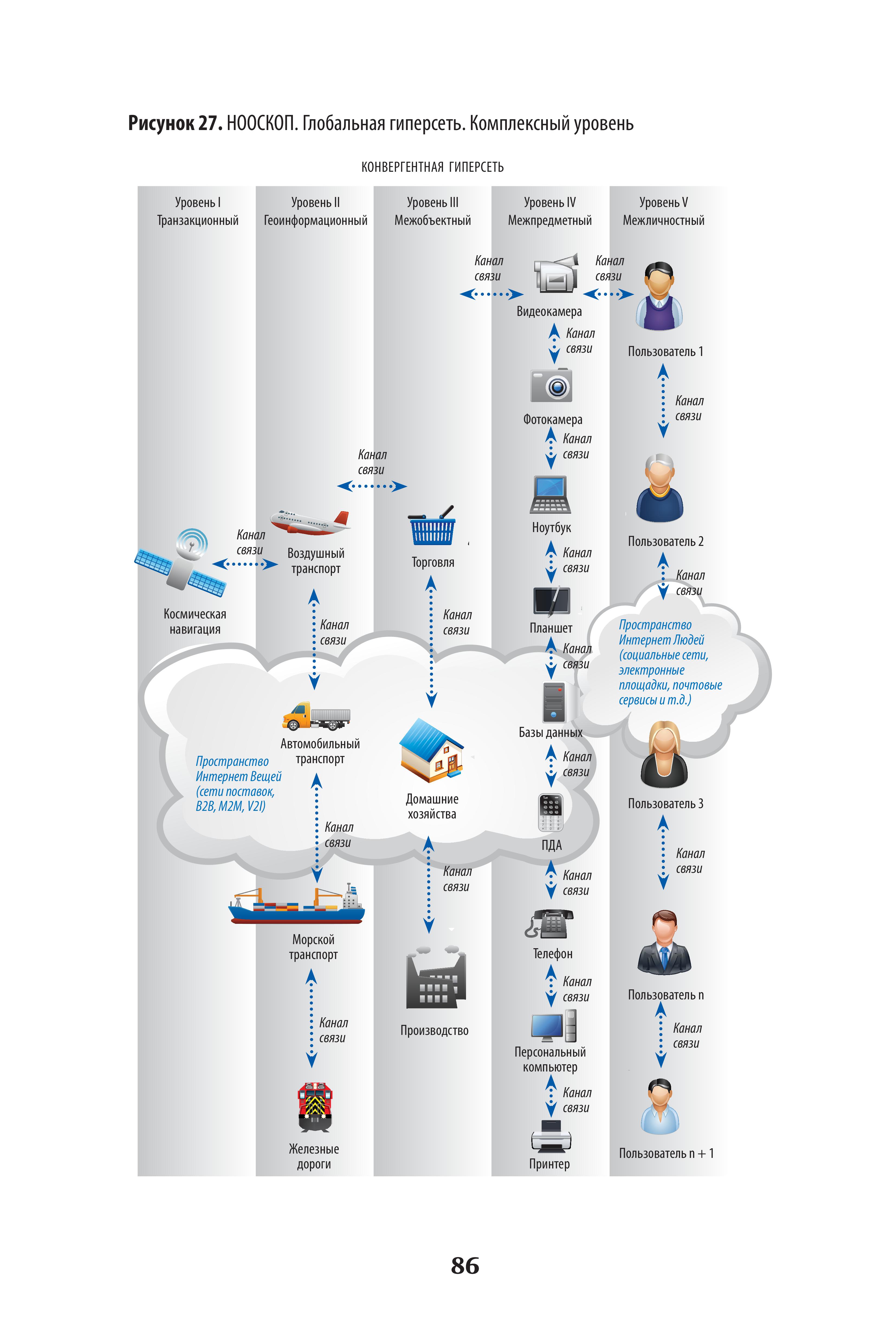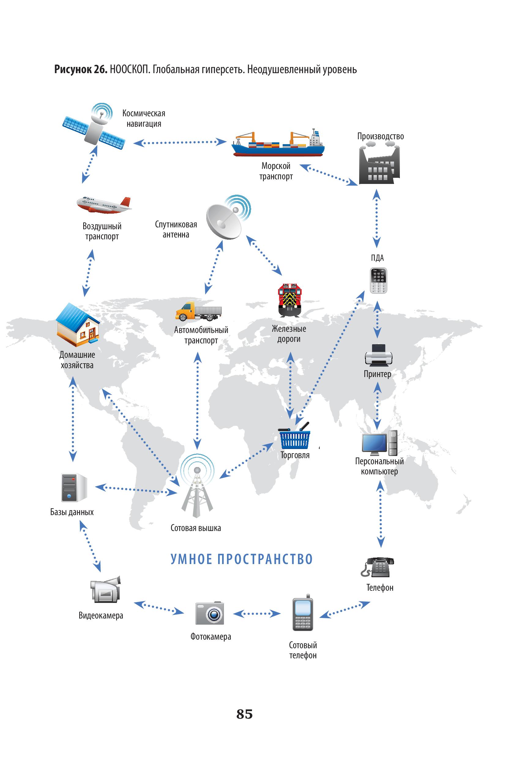 Там же описывается само устройство: «Прогноз и предупреждение кризисных событий на дорожной карте развития осуществляется с помощью НООСКОПА (на который получено более 50 патентов) — прибора, состоящего из сети пространственных сканеров, предназначенных для получения и регистрации изменений в биосфере и деятельности человека с помощью трансакций (кинокадров события) образа перекрестка пространства–времени–жизни. Сенсорная сеть НООСКОПА, начиная от банковских карт нового поколения и заканчивая «умной пылью», однозначно идентифицирует события в пространстве и во времени».
