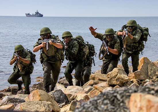 Учения морской пехоты. Фото: МО РФ «Подразделения соединения ВДВ из Волгоградской области совершили 1200-километровый марш комбинированным способом и прибыли на полигон "Опук" (Республика Крым), где приступили к инженерному оборудованию, организации охраны и обороны нового района сосредоточения и подготовке к выполнению учебно-боевых задач», — говорится в сообщении департамента информации и массовых коммуникаций военного ведомства.